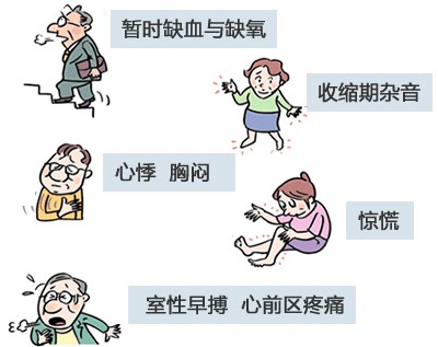 4、心力衰竭和心律失常型:部分患者原有心绞痛发作,以后由于病变广泛,心肌广泛纤维化,心绞痛逐渐减少到消失,却出现心力衰竭的表现,如气紧,水肿,乏力等,还有各种心律失常,表现为心悸.还有部分患者从来没有心绞痛,而直接表现为心力衰竭和心律失常。