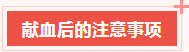 个人活动要适度,献血后当天请不要从事高空作业、高 温作业、体育比赛、通宵娱乐等活动。适当休息,个别出现倦怠感觉者,只要保证充足的睡眠,可以很快恢复。