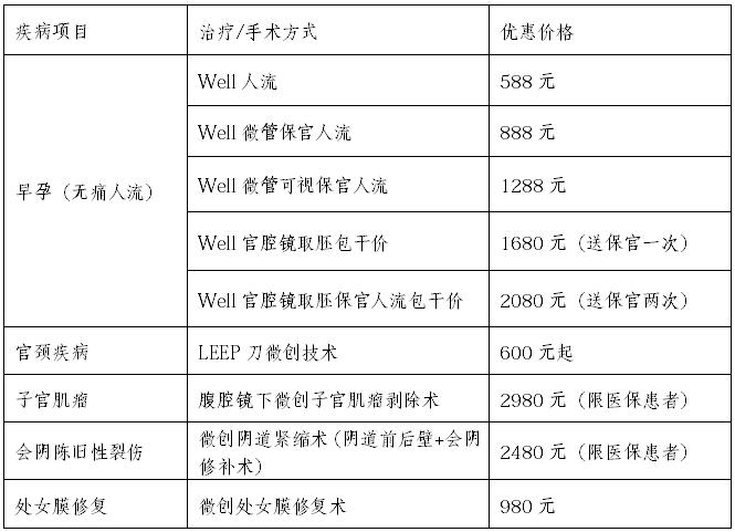 妇科手术优惠